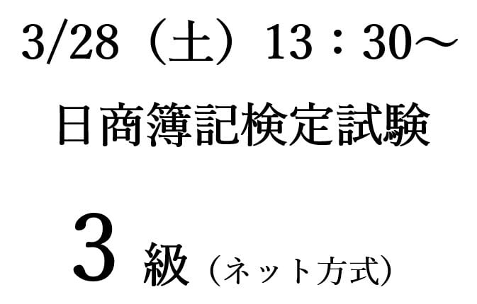 3/28(土)13:30~ 日商簿記検定試験3級(ネット方式)