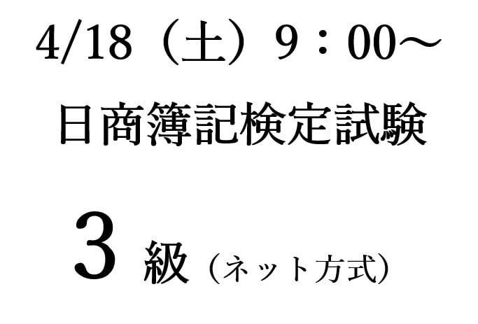4/18(土)9:00~ 日商簿記検定試験3級(ネット方式)