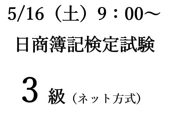 5/16(土)9:00~ 日商簿記検定試験3級(ネット方式)