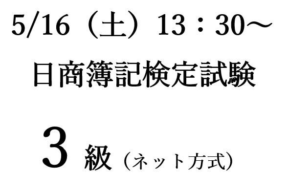 5/16(土)13:30~ 日商簿記検定試験3級(ネット方式)